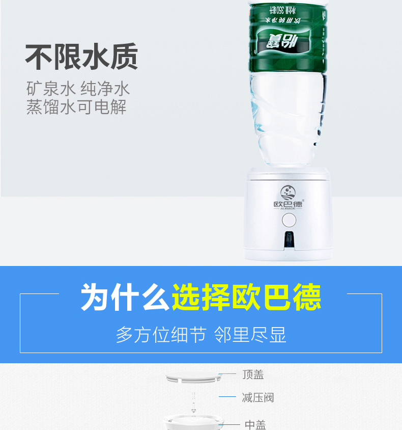 产品详情:欧巴德是东莞市汇能环保设备有??有限公司的大型身心健康产业品牌,成立于2012年,始终致力于水净化处理,空气净化和其他产品的研发,生产,销售.2013年,流行的日本的富氢水开始登录中国,国内氢医学研究团队获得了可观的学术研究成果。obard开始亲密关心氢生物学的研究进展,并开始开发富氢水generator相关技术。
